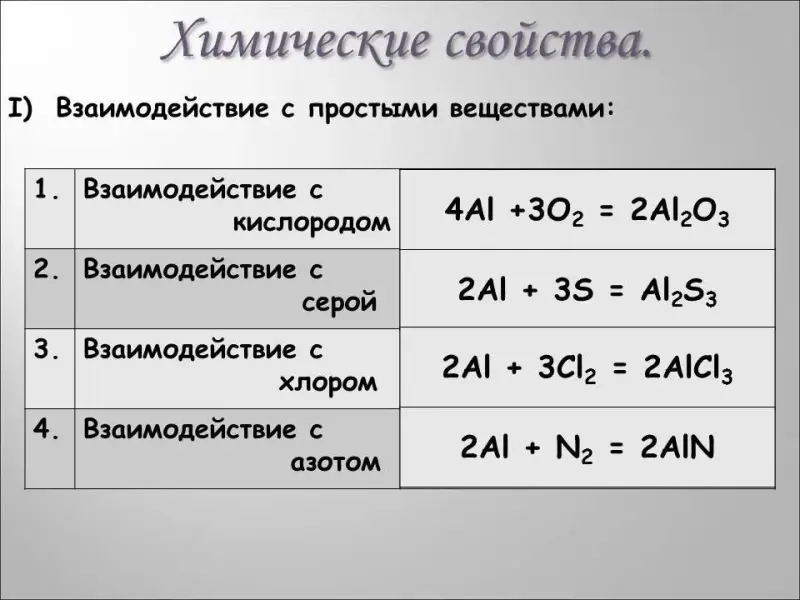- В какие реакции вступает алюминий?