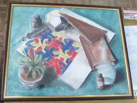 Учащаяся 11 класса представила познавательную информацию о творчестве голландского художника Морица Корнилис Эшера, в работах которого прослеживается взаимосвязь математики, биологии и химии. Вдохновившись его работами, выпускница лицея написала и подарила лицею свою картину, символизирующую три отделения лицея.
