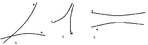 Возможные расположения двух прямых на плоскости Лобачевского: две несовпадающие прямые либо пересекаются в одной точке, либо параллельны, либо являются расходящимися <рисунок2>. В заключение отметим, что Лобачевский с исчерпывающей полнотой развил все разделы своей неевклидовой геометрии.