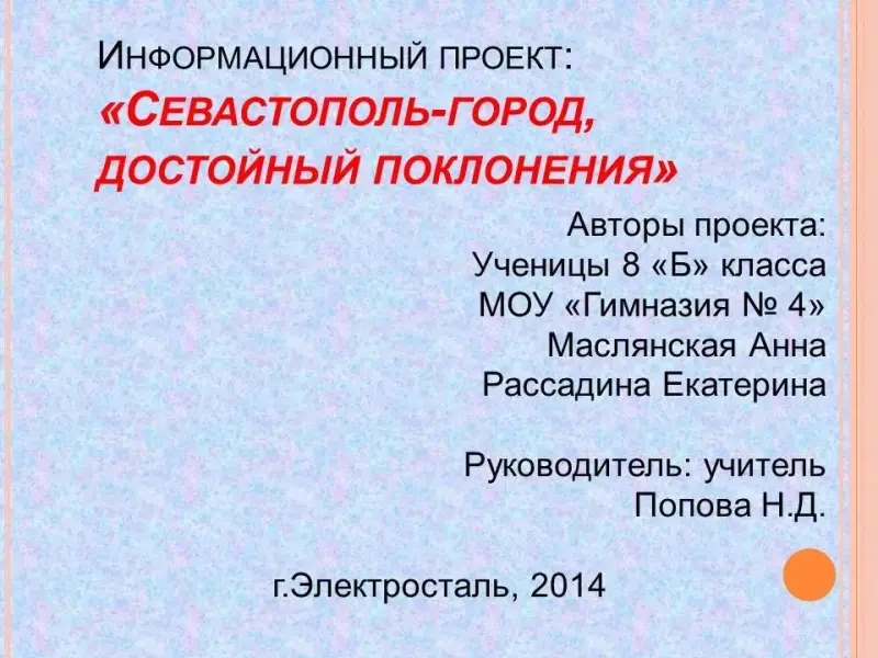 - Написать воспоминание от лица защитника Севастополя, письмо потомкам, взять интервью у героев обороны Севастополя.