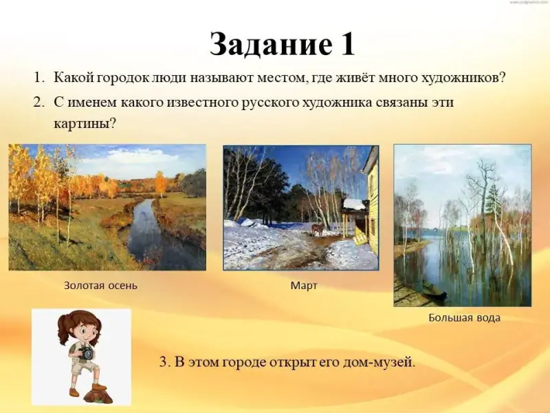 1. Какой городок люди называют местом, где живёт много художников?