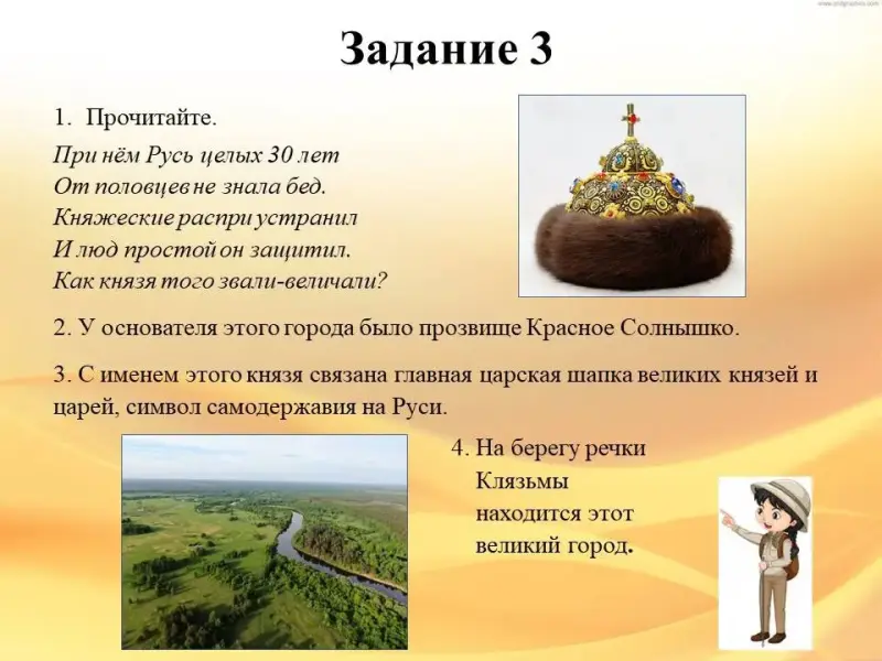 4. На берегу речки Клязьмы находится этот великий город.