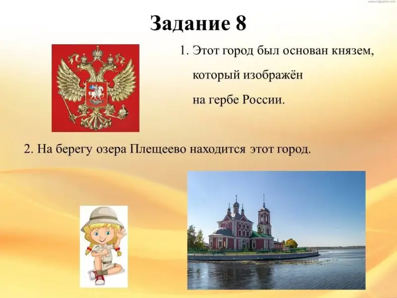 2. На берегу озера Плещеево находится этот город.