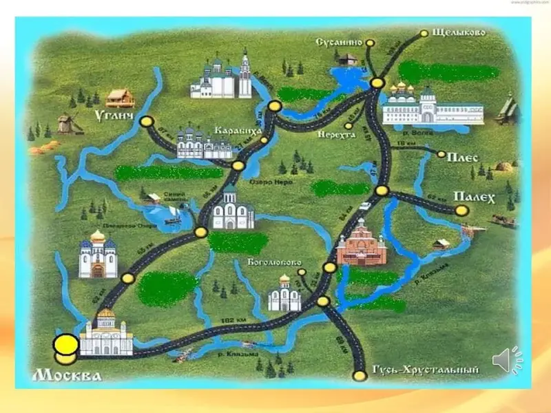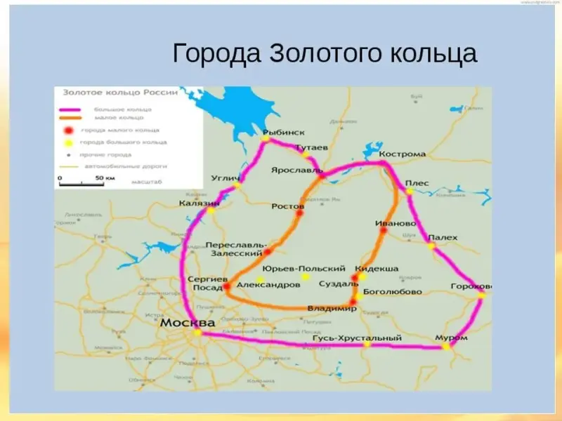 - Мы с вами совершили путешествие по Золотому кольцу - гордости России. Каждый город блистает своей богатой историей и достопримечательностями, а вместе составляют сокровищницу русской культуры.