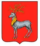 1. «В червлёном поле серебряный олень с золотыми рогами, гривой и копытами.