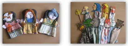 Коллегам были предложены разные варианты настольного театра - из ткани, вязаные крючком и спицами, из бумаги (цилиндры, конусы), из пластиковых ложек и т.д.