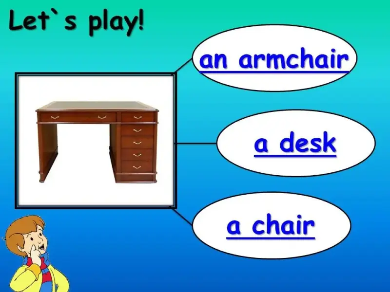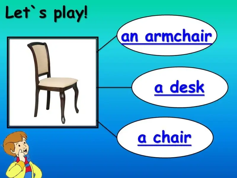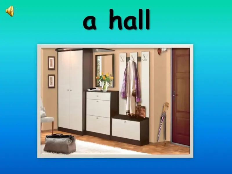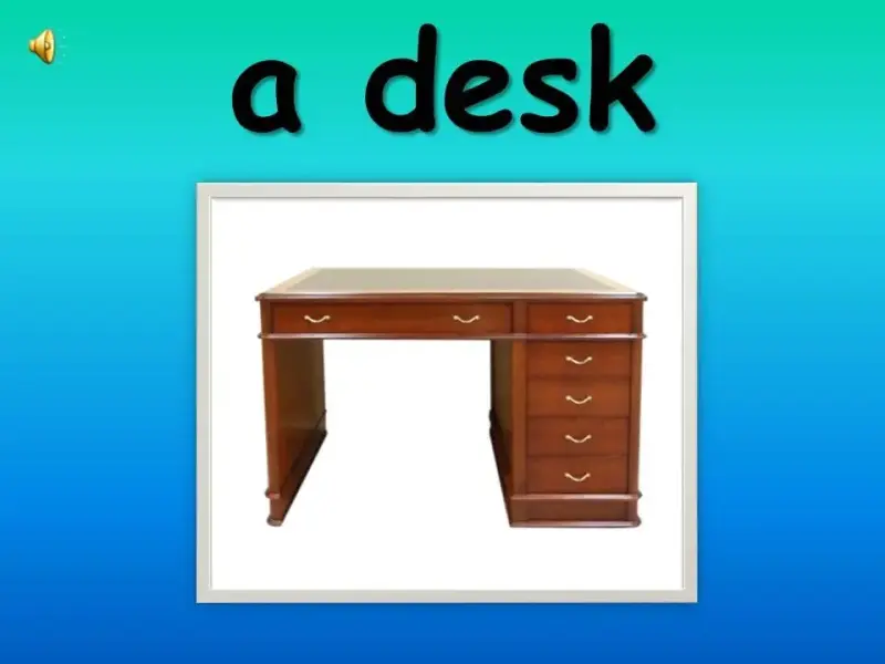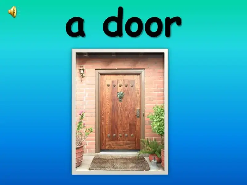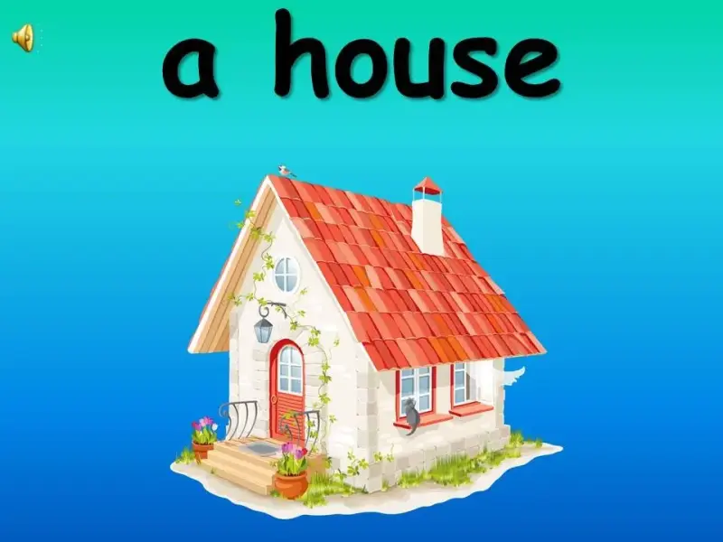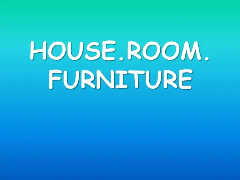 (a house, a flat, a door, a window, a living room, a bedroom, a hall, a kitchen, a bathroom, a bed, a cupboard, a wardrobe, a sofa, a chair, an armchair, a table, a desk, a drawer, a wardrobe) (слайды 5-23)
