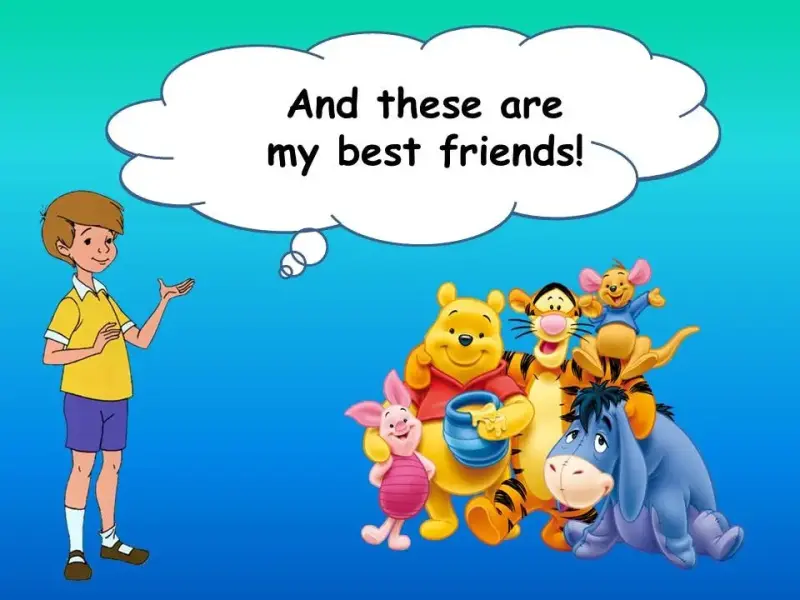 На слайде появляется герой сказки А.Милна «Винни-Пух и все - все - все» Кристофер Робин со своими друзьями. (слайд 4)