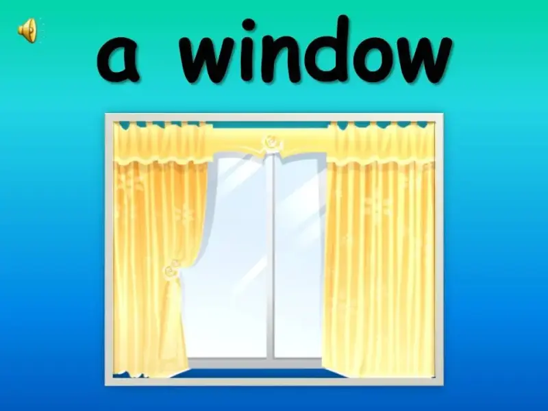 Учитель: And now, please, look at the screen and repeat after me. Look at the window, look at the door. Look at the ceiling, look at the floor.