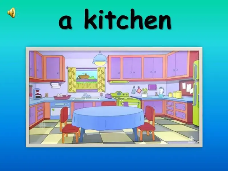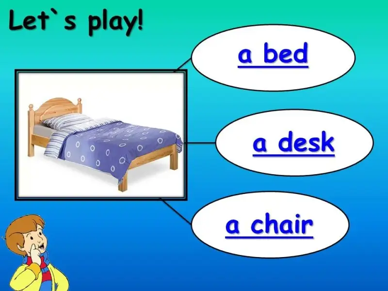 На слайдах изображения дома, квартиры, комнат и мебели. Обучающиеся рассматривают, прочитывают названия. После прочтения детьми, учитель включает аудиозапись слов, произнесенных носителем языка. Этим проверяется правильность прочтения и произнесения слов детьми.