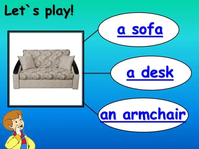 «Let`s remember the names of rooms and furniture». («Давайте вспомним названия комнат и мебели».)
