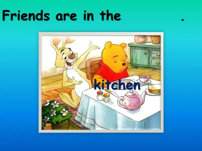(«Привет! Меня зовут Кристофер Робин, а это мои лучшие друзья. Сегодня мы хотим проверить ваши знания по теме «Дома. Комнаты. Мебель».)