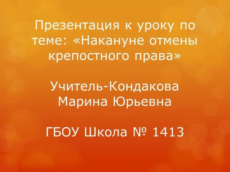 Анализ урока по теме «Накануне отмены крепостного права». История России. 8-й класс