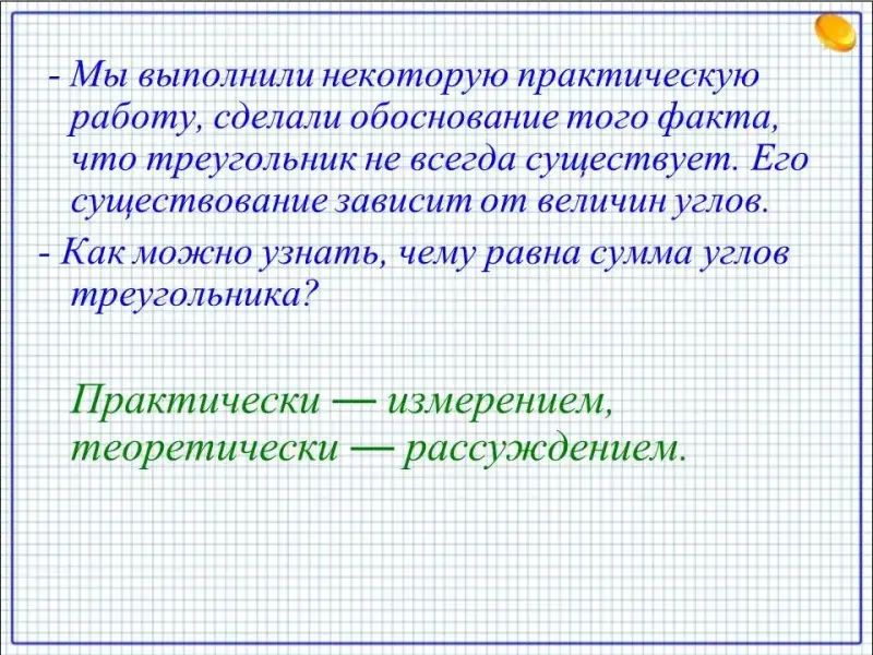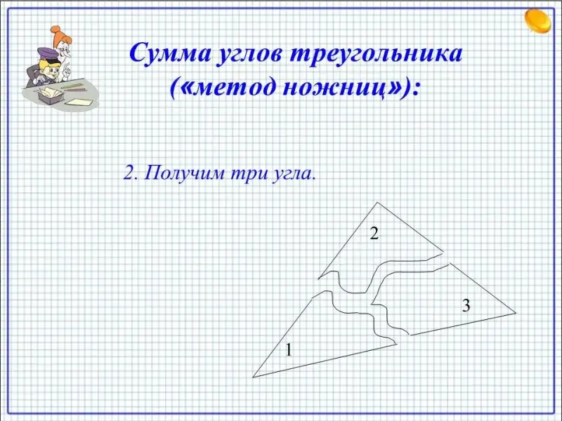 - Сегодня мы сделали научное открытие: сумма углов треугольника равна 180°.