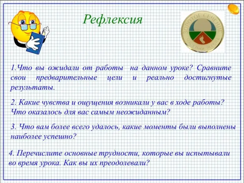 - Перечислите основные трудности, которые вы испытывали во время урока. Как вы их преодолевали?
