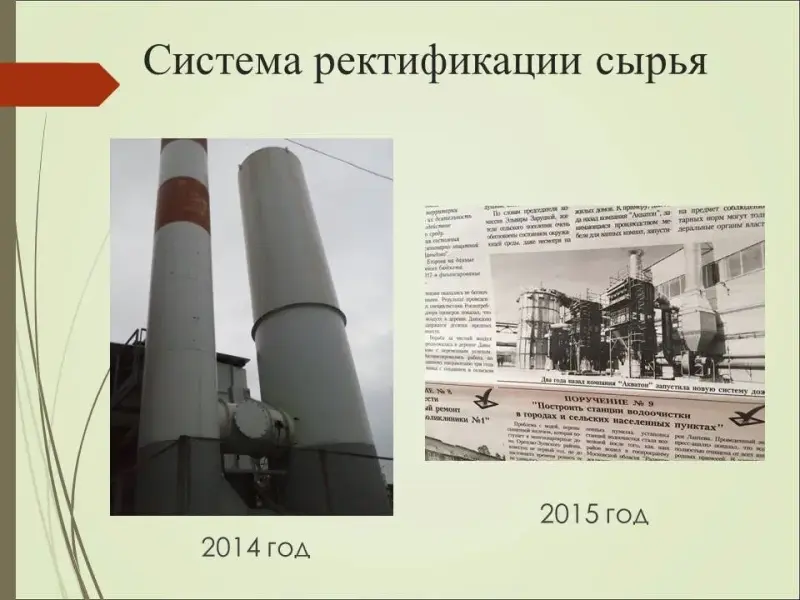 В 2014 году экологи нашей гимназии вместе с представителями экологической комиссии побывали на заводе «Акватон». Руководители предприятия рассказали нам о существующих проблемах, в частности о несоответствии газовой горелки в системе дожига органических веществ, используемых в производстве, о привозном газе плохого качества.