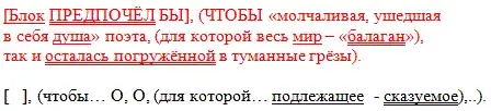 Блок ПРЕДПОЧ…Л(БЫ) ЧТО(БЫ) «м…лчаливая ушедшая в себя душа» п…эта для к…торой весь мир - «б…л…ган» так и осталась погружё…ной в туман…ые грёзы.