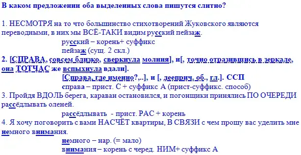 - слитное-раздельное написание омонимов