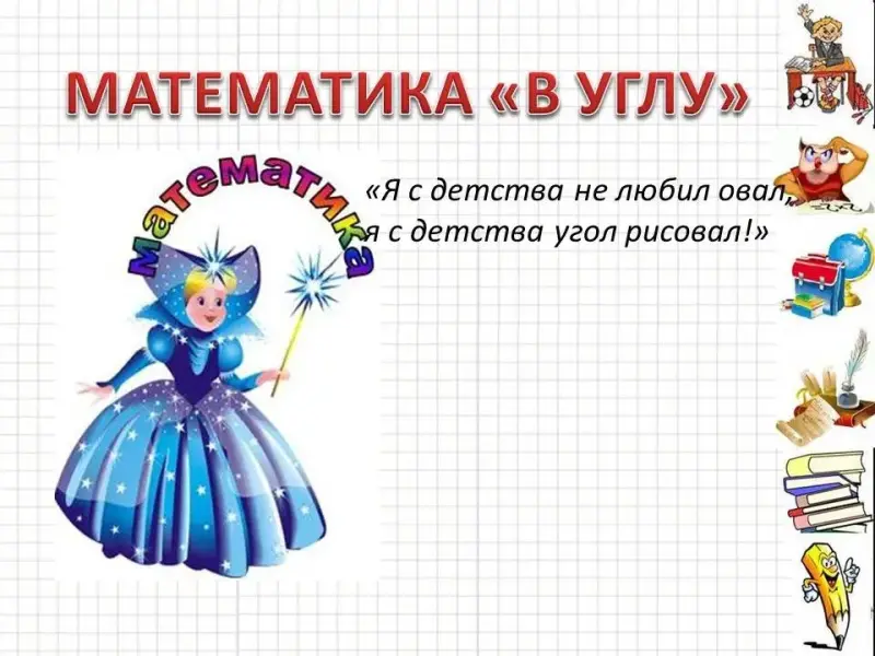 - Тему нашего сегодняшнего урока я бы назвала так: «Математика в углу». Ребята, а кто из вас стоял в углу? За что вас туда ставили? (Говорят дети.)
