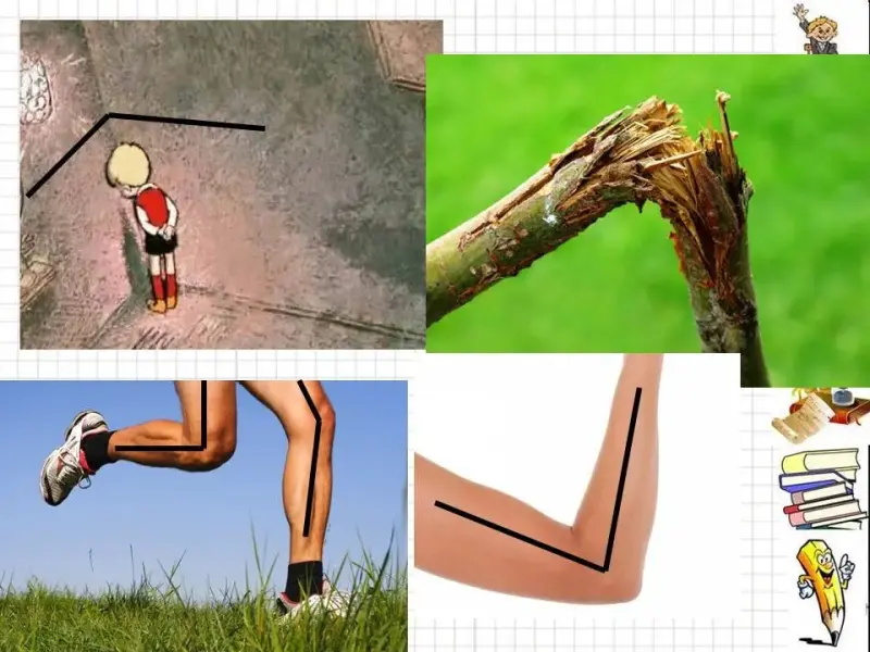 - Ведь угол - это перелом (ломаю веточку), колено, локоть. (продолжение СЛАЙДА 4).