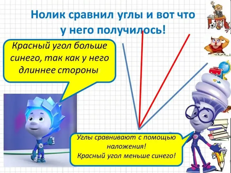 - Сравните величину каждого из этих углов с прямым углом.