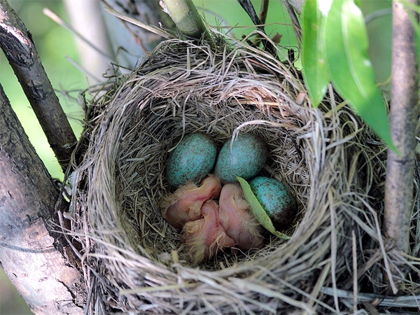 Лучшие мастера-строители - певчие птицы. Они завивают свои гнёзда из травинок, соломы, стеблей, листьев, мхов, лишайников, а внутри устилают перьями, конским волосом, шерстинками - для тепла и