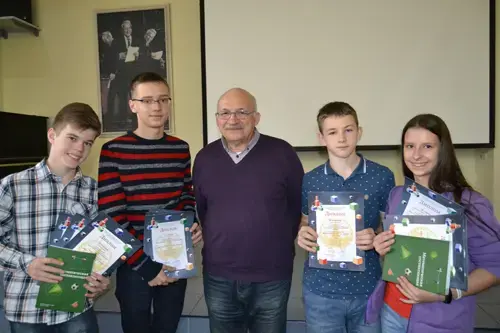 Команду составили Анна Назарчук, Андрей Жижелев, Глеб Кожанов и Данила Кузьмин. Если коротко о них и их достижениях за два последних учебных года по математике, физике и информатике, то это: Всероссийская олимпиада школьников, муниципальный этап - 4 победителя, 2 призёра; 2 похвальных грамоты Московской математической олимпиады МГУ; 1 победитель олимпиады имени Эйлера; 1 победитель Турнира Городов; 2 призера олимпиады «Формула Единства / Третье Тысячелетие»; 4 призера Всероссийской физико-математической олимпиады МФТИ; 2 участника математических смен ОЦ «Сириус» 2016 г. и 2017 г. И это еще не полный список!