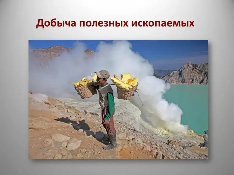 Величественная красота вулкана привлекает туристов. «Вулканический туризм» приносит некоторым районам значительный доход и поток желающих поближе познакомиться с вулканами неиссякаемый, не смотря на связанный с этим риск. (Презентация 1, Слайд 25-28).
