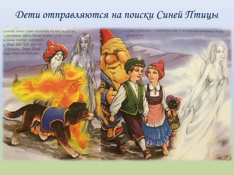 - Во главе с Душой Света дети отправляются на поиски Синей птицы.