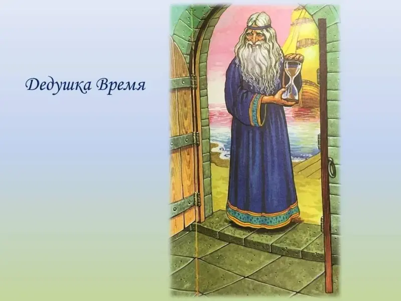 - Внезапно по дворцу разнесся мелодичный звон. В дверях показался Дедушка Время. Он спросил у детей: «Вы откуда здесь взялись, как попали сюда, что вам нужно, время хотите обмануть?» На помощь
