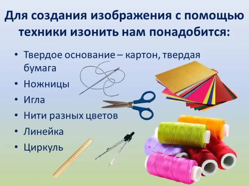 Много-много лет назад английские ткачи придумали новый способ переплетения ниток, они вбивали в дощечки гвозди и в определённой последовательности натягивали на них нити. В результате получались ажурные, кружевные изделия, которые использовались для украшения жилища. Этот вид искусства назвали - изонить.
