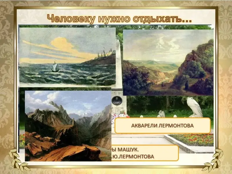 М.Ю.Л.: А вот я, господа, наслаждался горами Кавказа, лечебными водами Пятигорска…