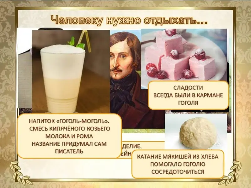 Н.В.Г.: Вы будете смеяться, но отец привил мне любовь к саду. У меня дома есть спицы, и я сам вяжу шейные платки, очень успокаивает. Могу приготовить авторский напиток «Гоголь-моголь».