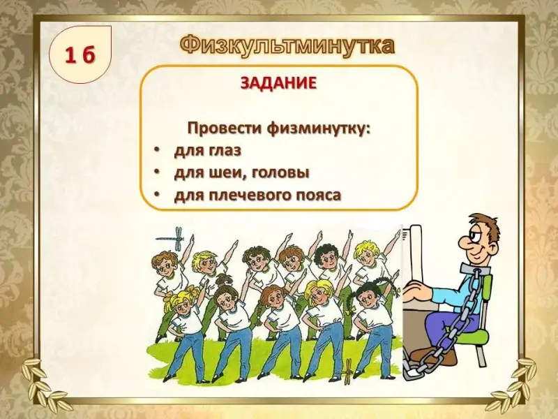 Слайд 28 (физминутку проводят дети - 1 балл)