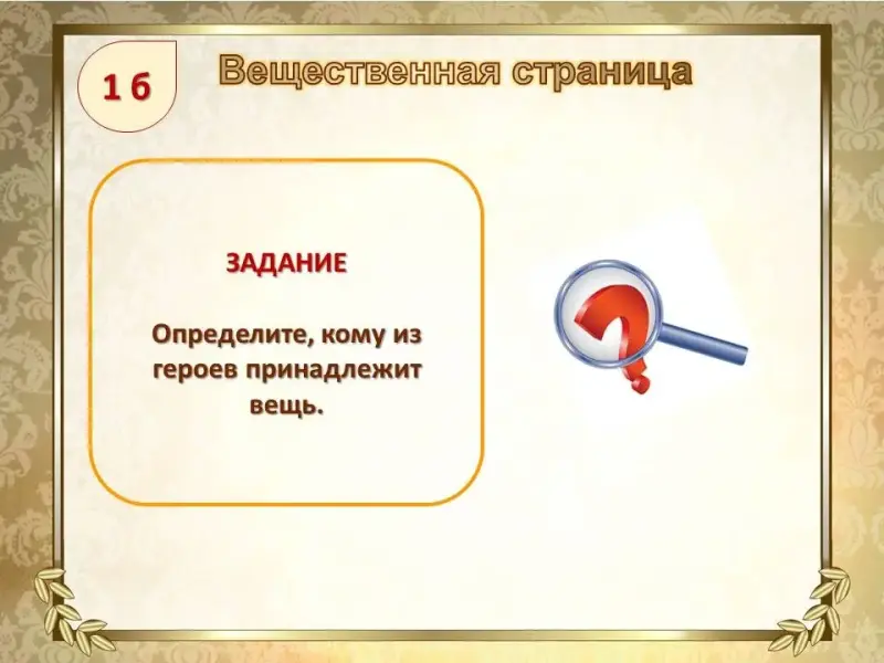 Задание: Аукцион, участники должны назвать, кому из литературных героев принадлежит вещь.