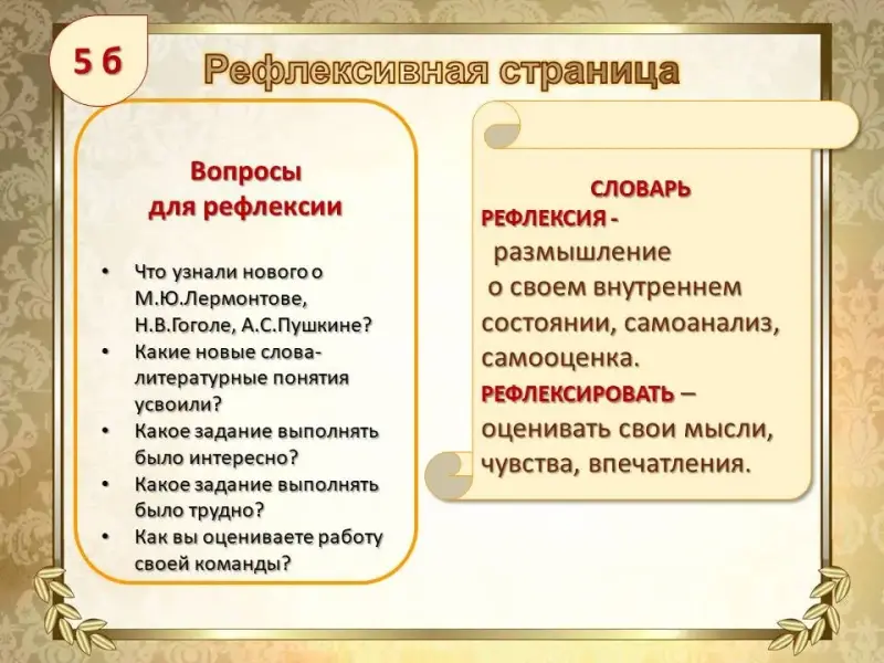 Рефлексия (на стенд вывешиваются новые слова - рефлексия, рефлексировать)