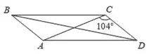 2. В параллелограмме ABCD диагональ AC в 2 раза больше стороны AB и ∠ACD = 104°. Найдите угол между диагоналями параллелограмма.