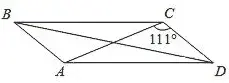 2. В параллелограмме ABCD диагональ AC в 2 раза больше стороны AB и ∠ACD = 111°. Найдите угол между диагоналями параллелограмма. Ответ дайте в градусах.