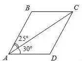 1. Диагональ AC параллелограмма ABCD образует с его сторонами углы, равные 25° и 30°. Найдите больший угол параллелограмма.