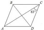 2. В параллелограмме ABCD диагональ AC в 2 раза больше стороны AB и ∠ACD = 63°. Найдите угол между диагоналями параллелограмма. Ответ дайте в градусах.