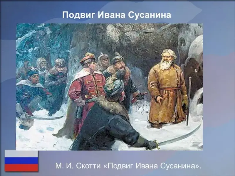 Именно к этому времени относится подвиг русского крестьянина, сельского старосты Ивана Сусанина. слайд 7.