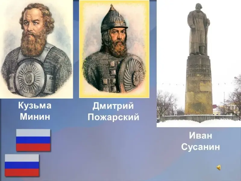 Выдающиеся личности: К.А. Минин; Д.М. Пожарский; Иван Сусанин.