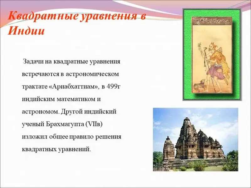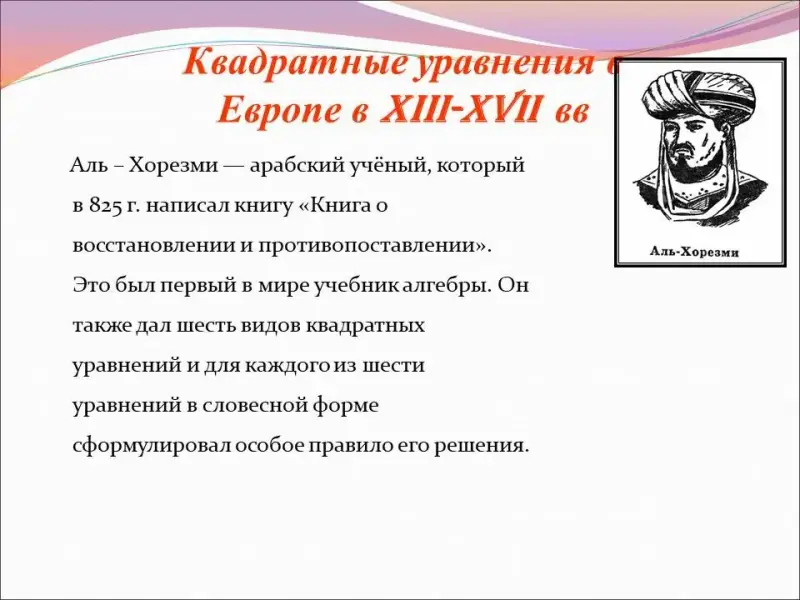 Ученик заранее готовит сообщение об истории квадратных уравнений, с презентацией. |