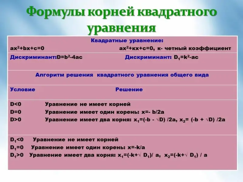 Итак, мы повторили, как можно решить квадратное уравнение. Сейчас я хотела бы проверить, как вы усвоили эти формулы и определения.
