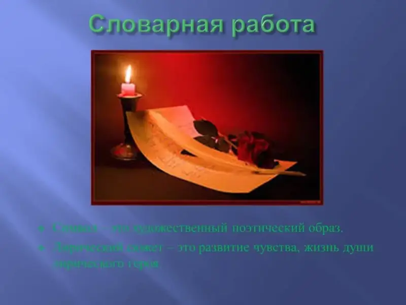 - Каково психологическое состояние лирического героя? (Лирический герой любит и тоскует, ждёт и боится обмануться в мечтах).