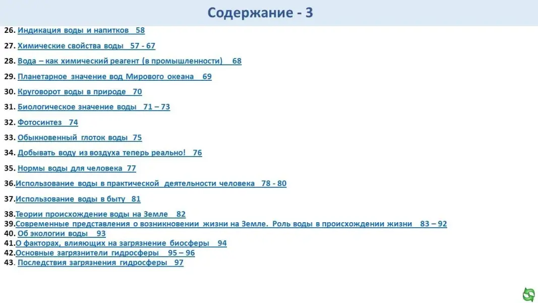 - Вода в природе. Физические ее свойства. Разновидности воды и льда (9-14, 28, 44, 45, 30)