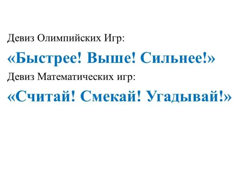 Девиз Математических игр: «Считай! Смекай! Угадывай!»