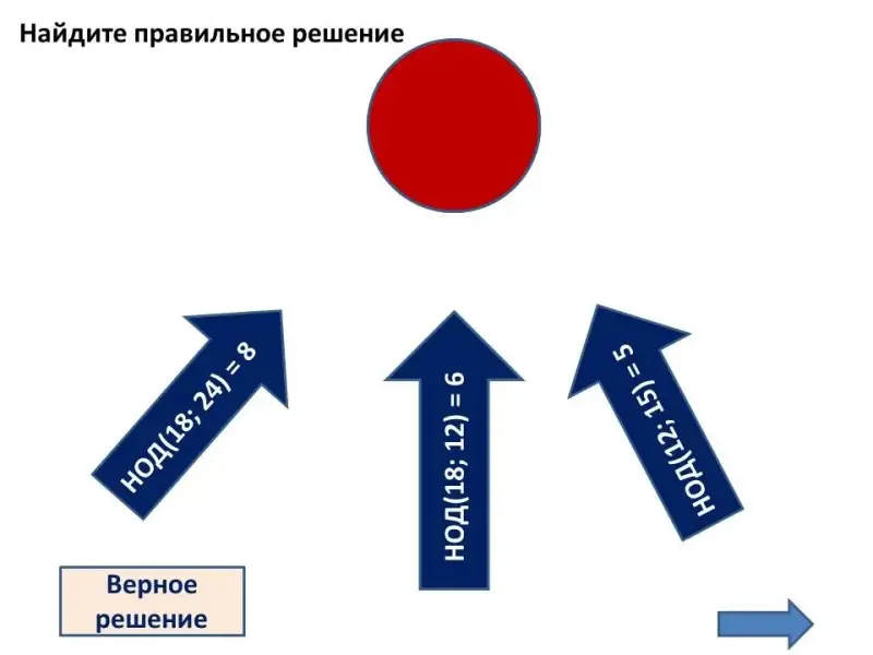 Задание команде «Математическая семерка»: Найдите НОД чисел 1)18 и 24, 2)12 и 15, 3) 36 и 42