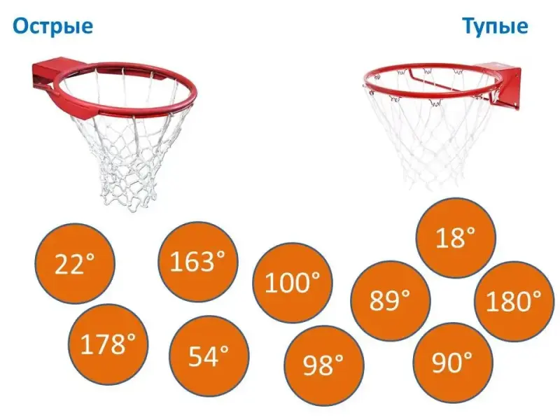 Найдите острые и тупые углы: 22°, 163°, 178°, 54°, 100°, 98°, 89°, 18°, 90°, 180°