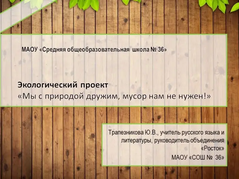 Экологический проект «Мы с природой дружим, мусор нам не нужен»